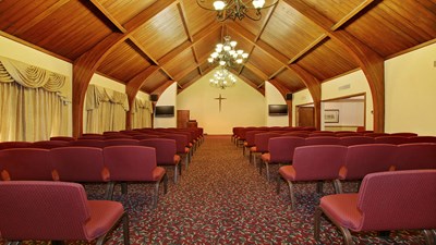 Our funeral home features a beautiful chapel with a cathedral ceiling and seating for up to 200 guests.
